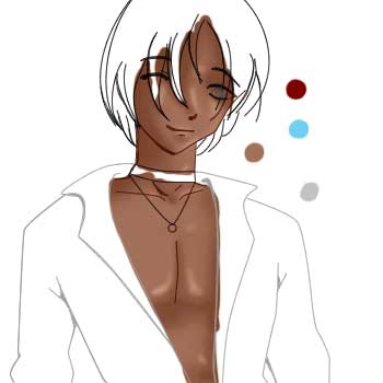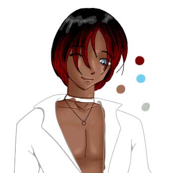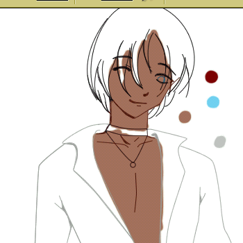 Create a new layer between the lineart layer and the background layer. I usually make a pallet first, so pick some colors you want to use and stick them on this layer. For skin, I chose R166 G115 B88, for his eyes I chose R109 G207 B246, and for the red parts, I chose R121 G0 B0. You don't have to use these colors if you don't want...I'll just be referring to them for the tutorial's sake.