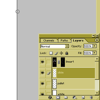 Color in the skin (make sure you're on the skin layer). It's all right to go outside the lines...we'll be cleaning that up later.